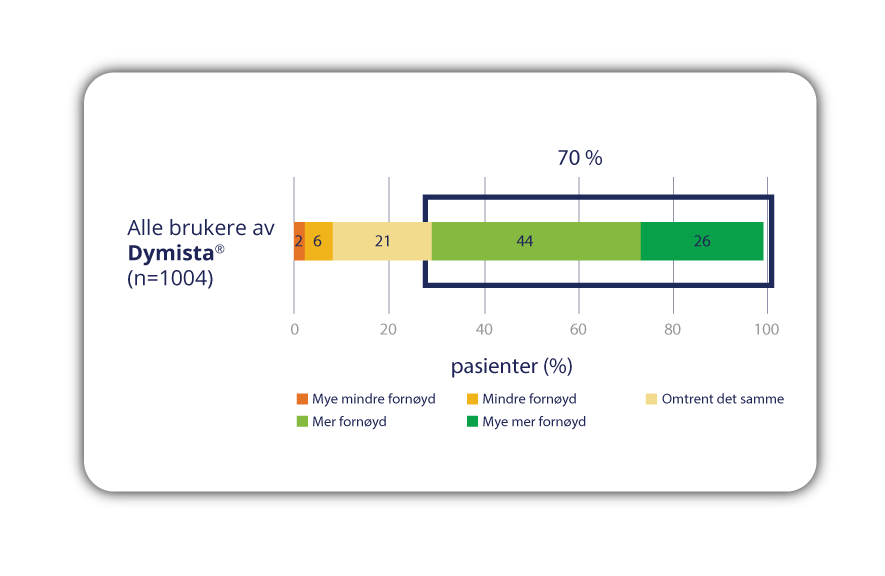 70 % av pasientene var mer, eller mye mer, fornøyd med Dymista®, sammenlignet med sin tidligere allergi-behandling17