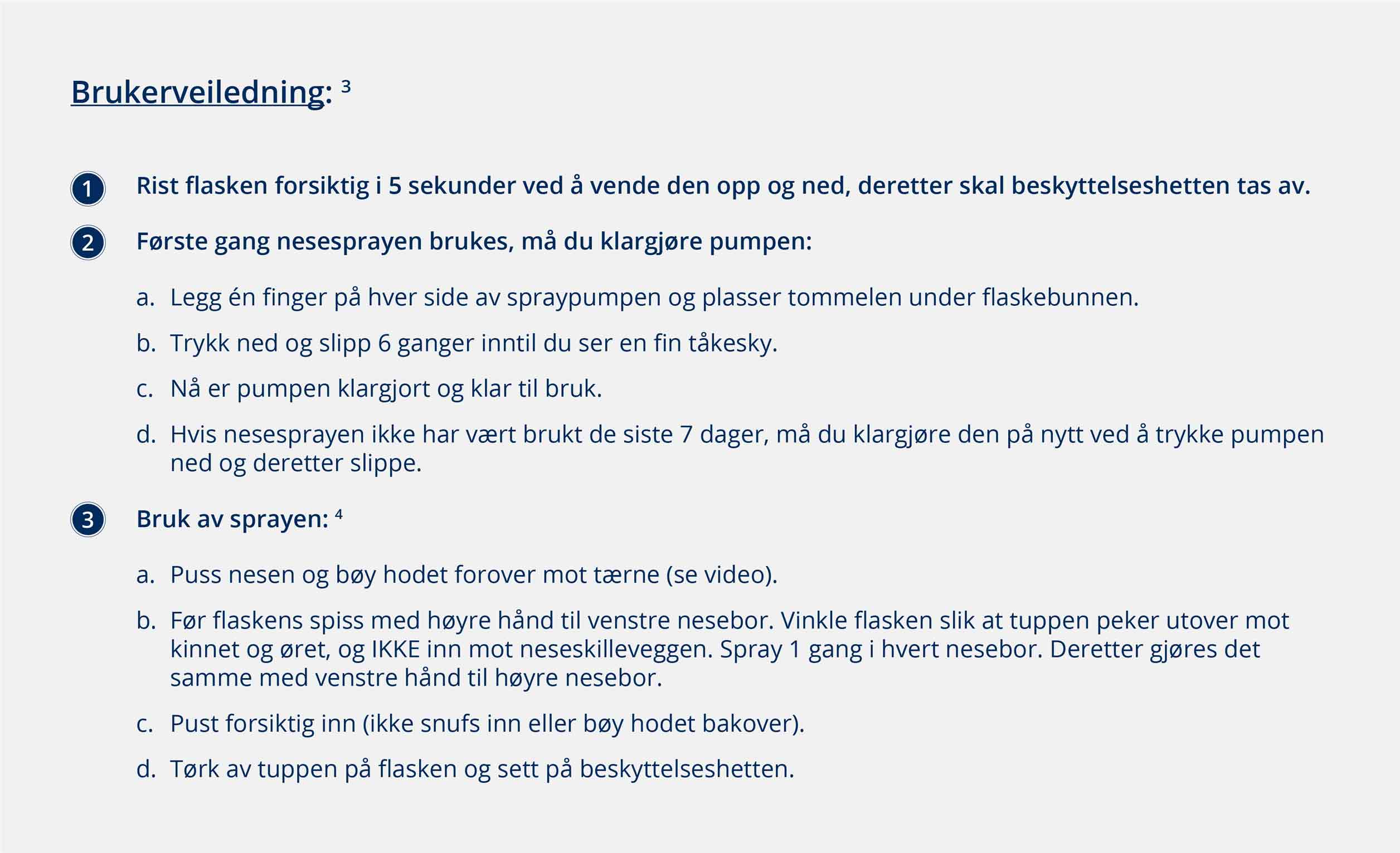 En nesespray som er enkel å bruke og gir rask og effektiv symptomlindring er viktig for god compliance. Dette vil igjen gi et bedre behandlingsresultat. Det er derfor viktig med korrekt administrasjon av Dymista® nesespray.