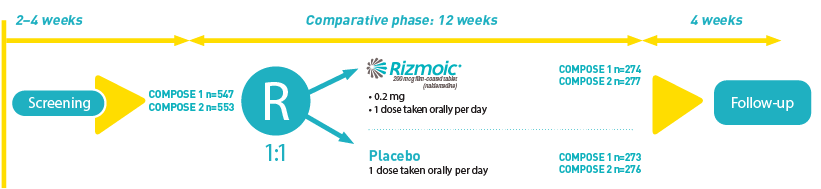 - In COMPOSE-2, these figures were 50% for naldemedine and 48% for placebo.