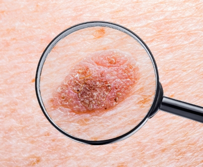 Det første steget mot aktinisk keratose er solskadet hud med muterte celler (UVR mutasjon og inaktivering av kritiske gener, p53).1 UV-stråling fra solen kan skade basalcellene i huden. Cellene vil dele seg raskere i det skadete området, og hornlaget i overhuden rekker ikke å støte de bort på normalt vis. En eller flere lesjoner av aktinisk keratose er dannet.2,3