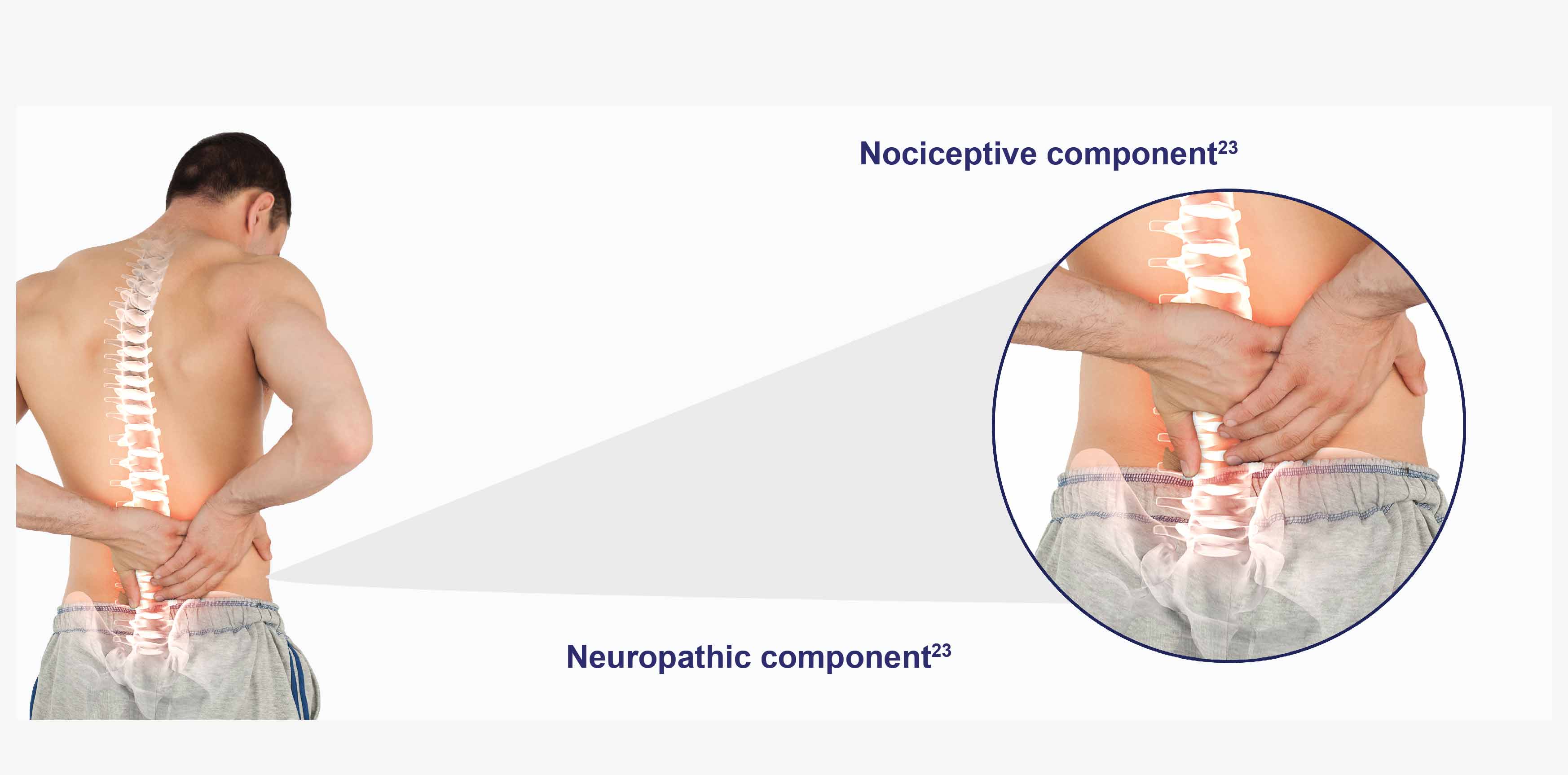 - Ryggsmerter kan være en kombinasjon av både nociseptive og nevropatiske komponenter (blandede smerter).5