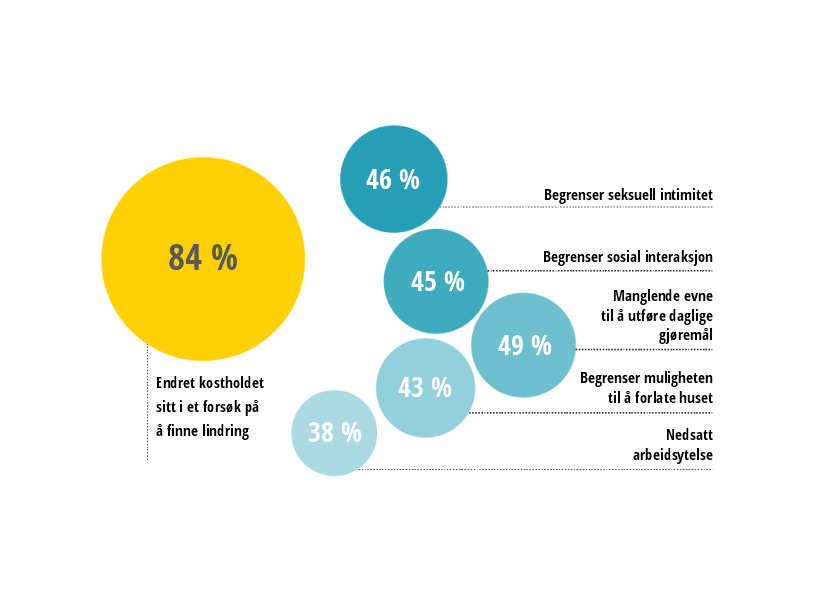 • Seksuell intimitet: 46 % av pasientene føler at deres intime forhold blir påvirket.